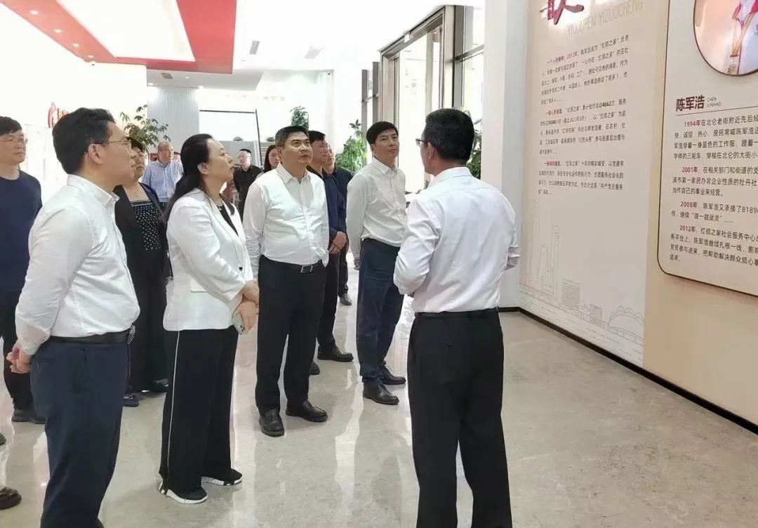 5月22日上午,中央社会工作部五局邓丽娟局长在浙江省委社会工作部陆维副部长,宁波市委副秘书长、社会工作部部长、两新工委书记孙小雄,市委社工部副部长、两新工委副书记金燕、区委副书记、社工部部长、政法委书记方飞龙等陪同下,北仑红领之家社会服务中心考察调研“党员+社会工作者+志愿者”融合项目开展情况。