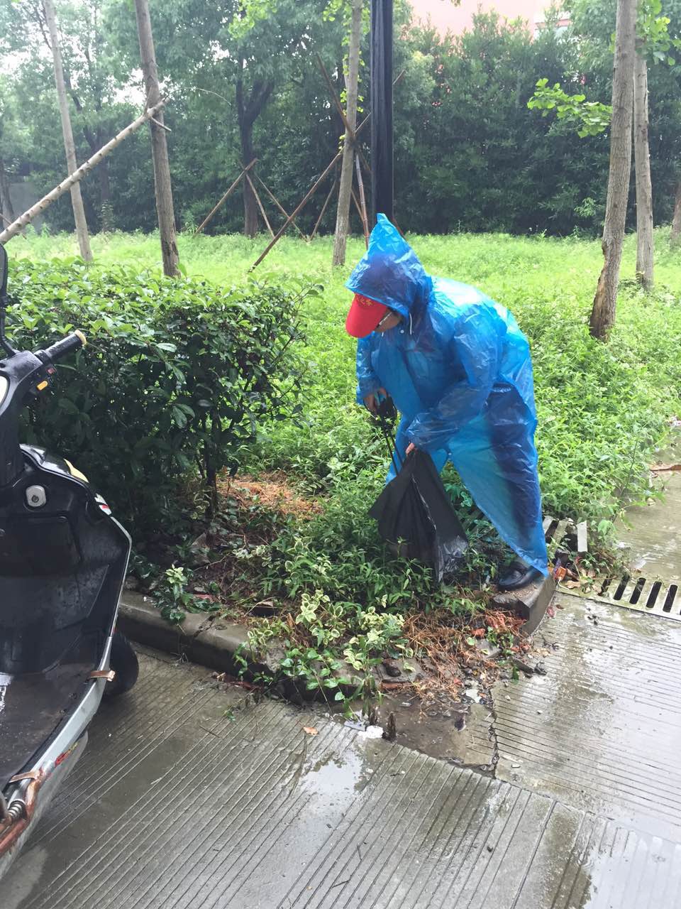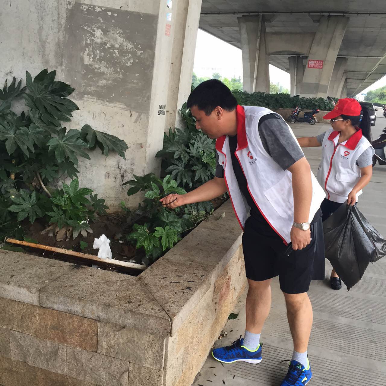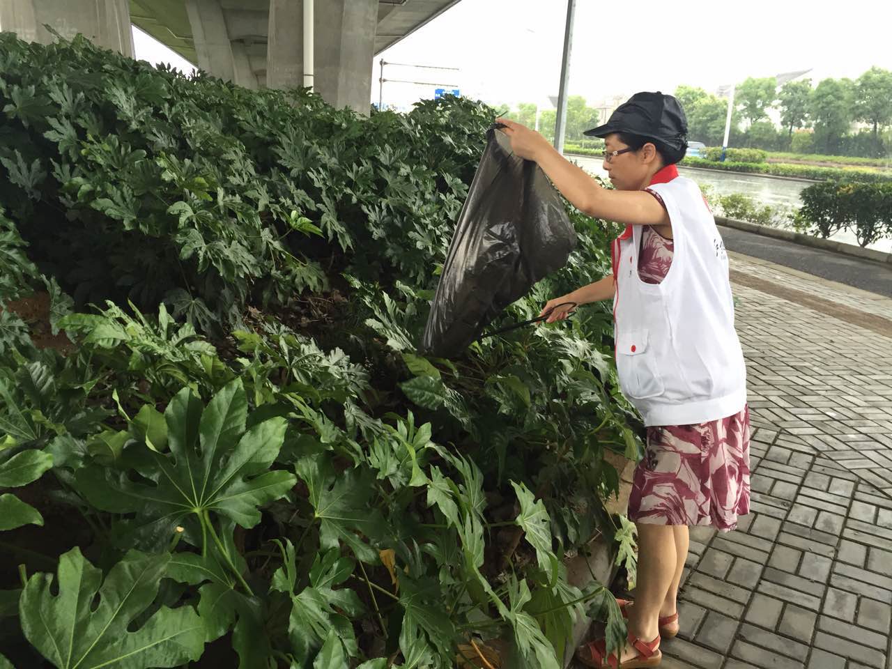 7月10日上午,红领之家志愿者一行20余人来到疏港高架桥下,进行第五十三期“红领护绿”行动。 本次活动前期在准备、策划时,针对的是今年第一号台风“尼伯特”光临后,对北仑疏港高架桥下的公园内绿化带进行保护。尽管台风没按时来,红领志愿者仍坚持来进行“红领九日”中的“红领护绿日”活动,活动内容转为常规性的服务:捡白色垃圾、劝导不文明行为。 受台风影响,有时阴云密布,有时太阳高照,空气中还时不时飘过几丝细雨。岸边聚集了不少前来垂钓的市民。在志愿者来到河边时,他们就把手边上垃圾直接放在了志愿者的垃圾袋里,互相对视一笑,仿佛熟人一般。志愿者也不忘提醒市民,请注意天气变化。 果然,没过多久,大雨就倾倒下来。志愿者的“护绿战场”从公园里转到了疏港高架桥下。躲在大片叶子下的烟头、塑料袋、西瓜皮等一一被志愿者“领”进了垃圾袋。当看到我们拎着垃圾袋一路捡来,在教堂附近高架桥下跳舞的叔叔阿姨们竟也转移了“战场”,主动将未捡过的那一块地空了出来,继续在《十送红军》音乐的伴奏下跳起了轻快的舞蹈,志愿者的脚步也轻快的许多。 高架桥下真是个好地方,因为雨下得太大,还吸引了分快递的小哥。他们将快递分好后,又分开了西瓜。他们吃了一块后左右瞅瞅,没看到垃圾筒,就将西瓜皮扔在了地上。志愿者走过,将西瓜皮捡到垃圾袋里,并留下那个垃圾袋。等我们转回来时,所有的西瓜皮都被请进了垃圾袋,同时待在垃圾袋里的,还有纸箱和胶带纸。 志愿服务是一项公益活动,而公益的本质是唤醒善良。红领之家志愿服务长效机制正是在用永不停息的行动来唤醒潜藏在人们心底的善。公益在于参与,是在于点点滴滴的行动。垂钓的市民,跳舞的阿姨以及送快递的小哥,愿你们的善传递给更多的人。